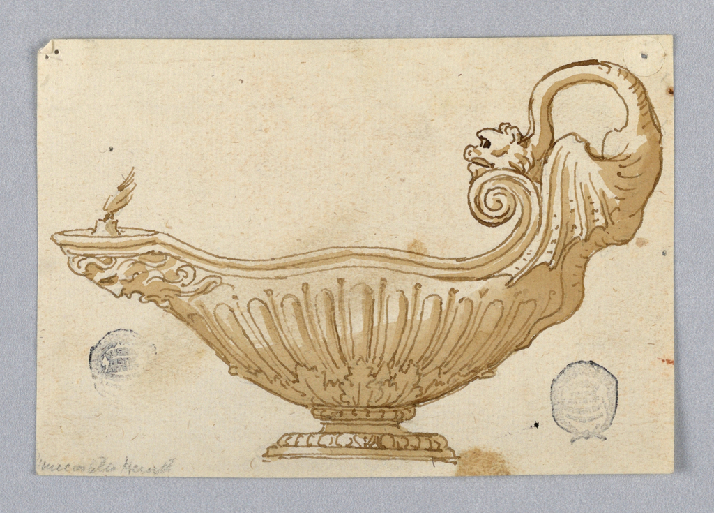 Drawing, Design for an Oil Lamp; Italy; pen and ink, brush and wash on paper; Museum purchase through gift of various donors; 1901-39-998