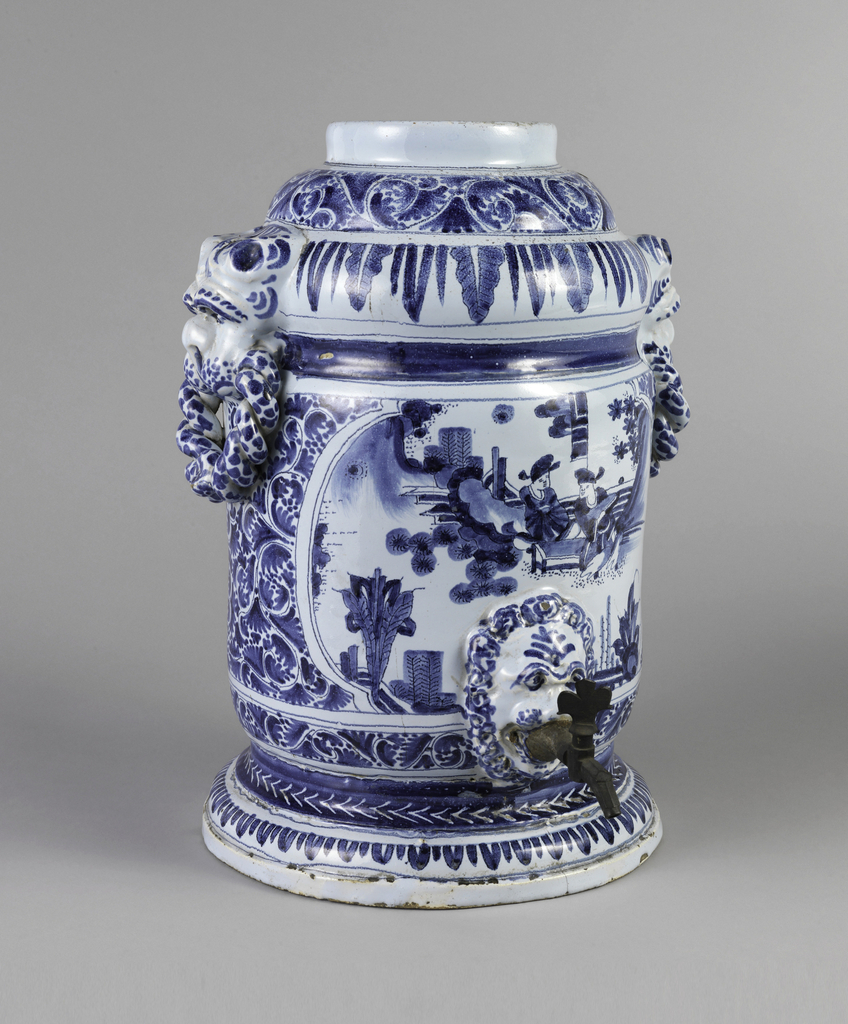 This is a Fountain. It is dated early 18th century and we acquired it in 1907. Its medium is tin-glazed earthenware. It is a part of the Product Design and Decorative Arts department.