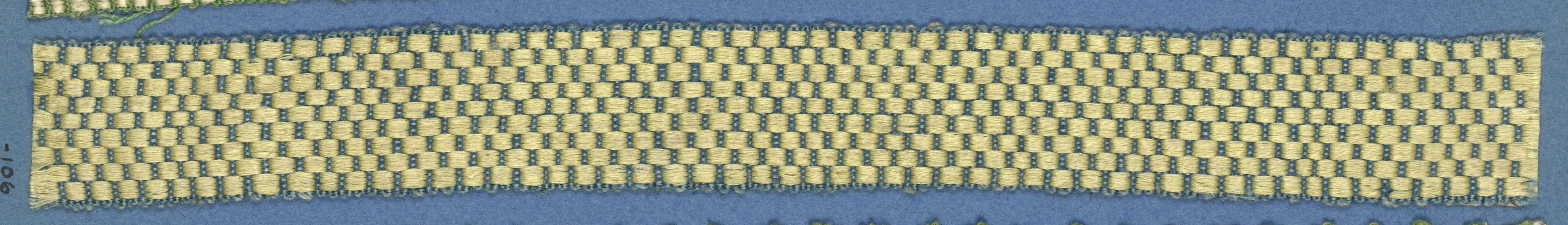 This is a Trimming. It is dated 19th century and we acquired it in 1909. Its medium is silk and its technique is woven. It is a part of the Textiles department.