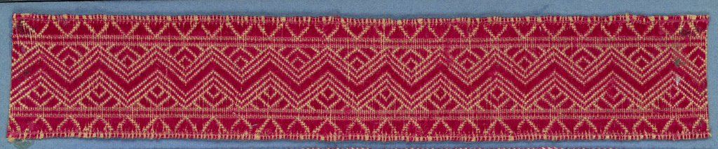 This is a Trimming. It is dated 19th century and we acquired it in 1909. Its medium is silk and its technique is woven. It is a part of the Textiles department.