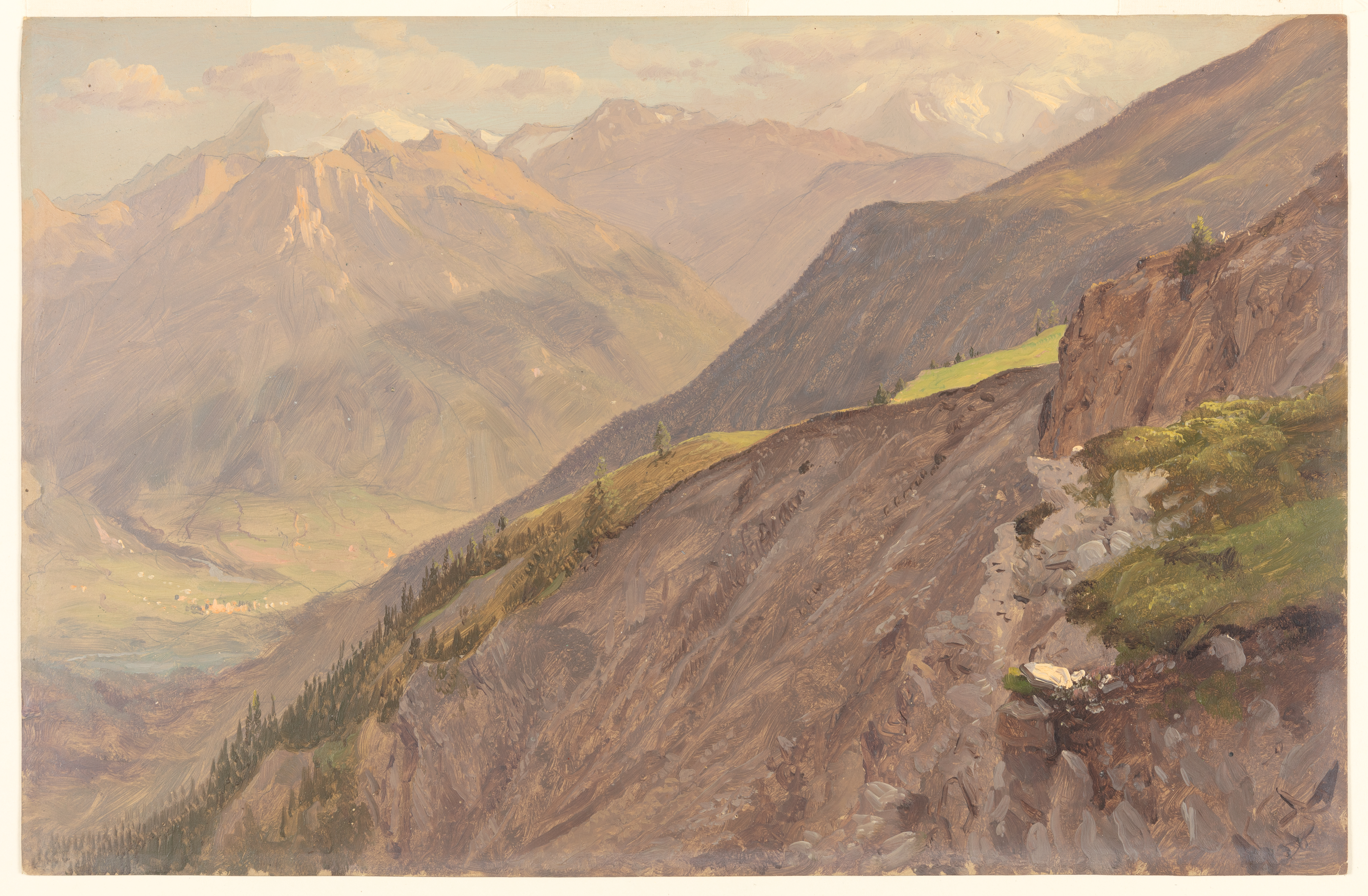 Drawing, Bavarian Alps near Berchtesgaden, Bavaria (Germany); Frederic Edwin Church (American, 1826–1900); USA; oil and graphite on tan paperboard; 32.6 × 50.1 cm (12 13/16 × 19 3/4 in.); Gift of Louis P. Church; 1917-4-579-c