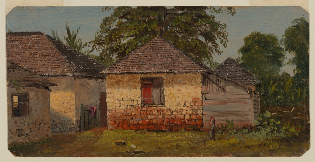Drawing, Village on Mt. Salus, Jamaica; Frederic Edwin Church (American, 1826–1900); USA; brush and oil, graphite on paperboard; 12.5 × 22.8 cm (4 15/16 in. × 9 in.); Gift of Louis P. Church; 1917-4-681