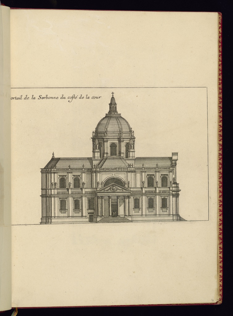 Lettered in plate, upper left: Portail de la Sorbonne du costé de la cour