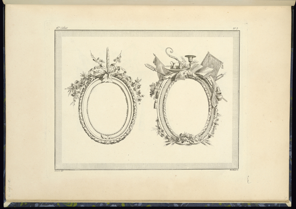 Print, Two Medallion or Frame Designs; Designed by Pierre Ranson (French, 1736–1786); Print Maker: Pierre-Gabriel Berthault (French, 1737–1831); Published by Esnauts et Rapilly (French, 1770 - 1820); etching on laid paper; Purchased for the Museum by the Advisory Council; 1921-6-389-96