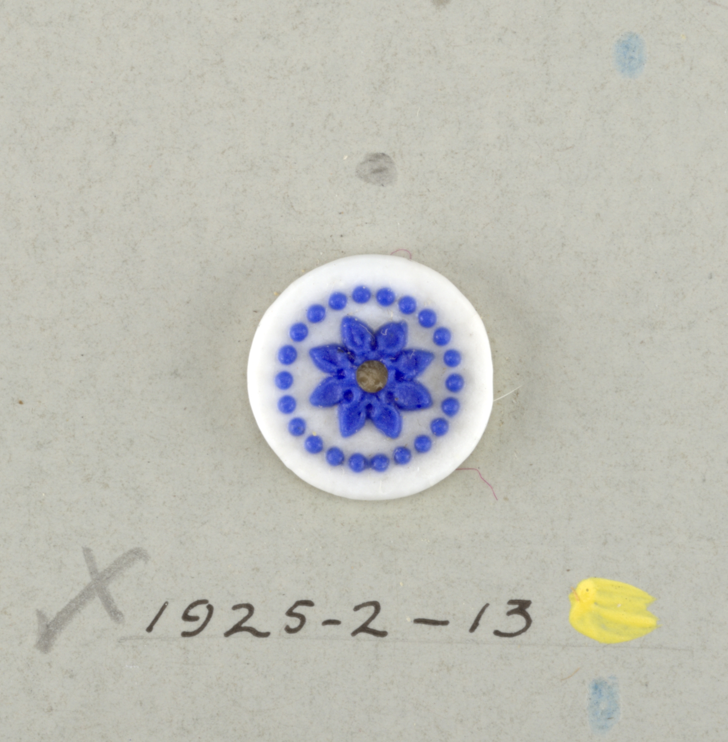 This is a Button. It is dated late 18th century and we acquired it in 1925. Its medium is stoneware. It is a part of the Product Design and Decorative Arts department.