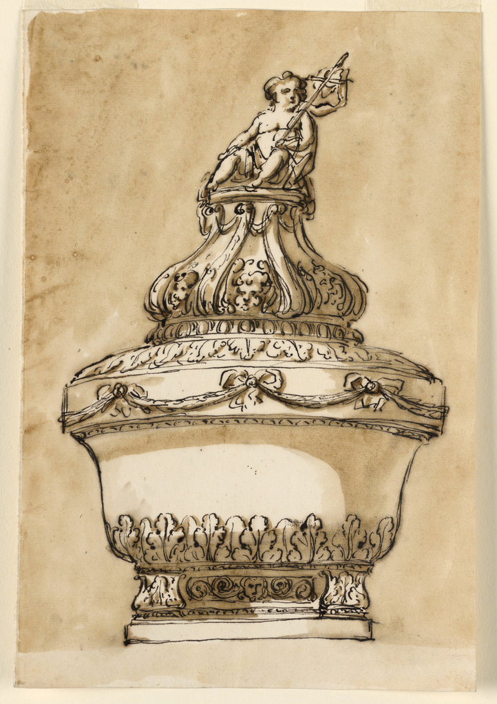 Drawing, Design for a Baptismal Font; Designed by Giuseppe Barberi (Italian, 1746–1809); Italy; pen and brown ink, brush and brown wash on lined off-white laid paper; 27 x 18.7 cm (10 5/8 x 7 3/8 in.); Museum purchase through gift of various donors and from Eleanor G. Hewitt Fund; 1938-88-1406