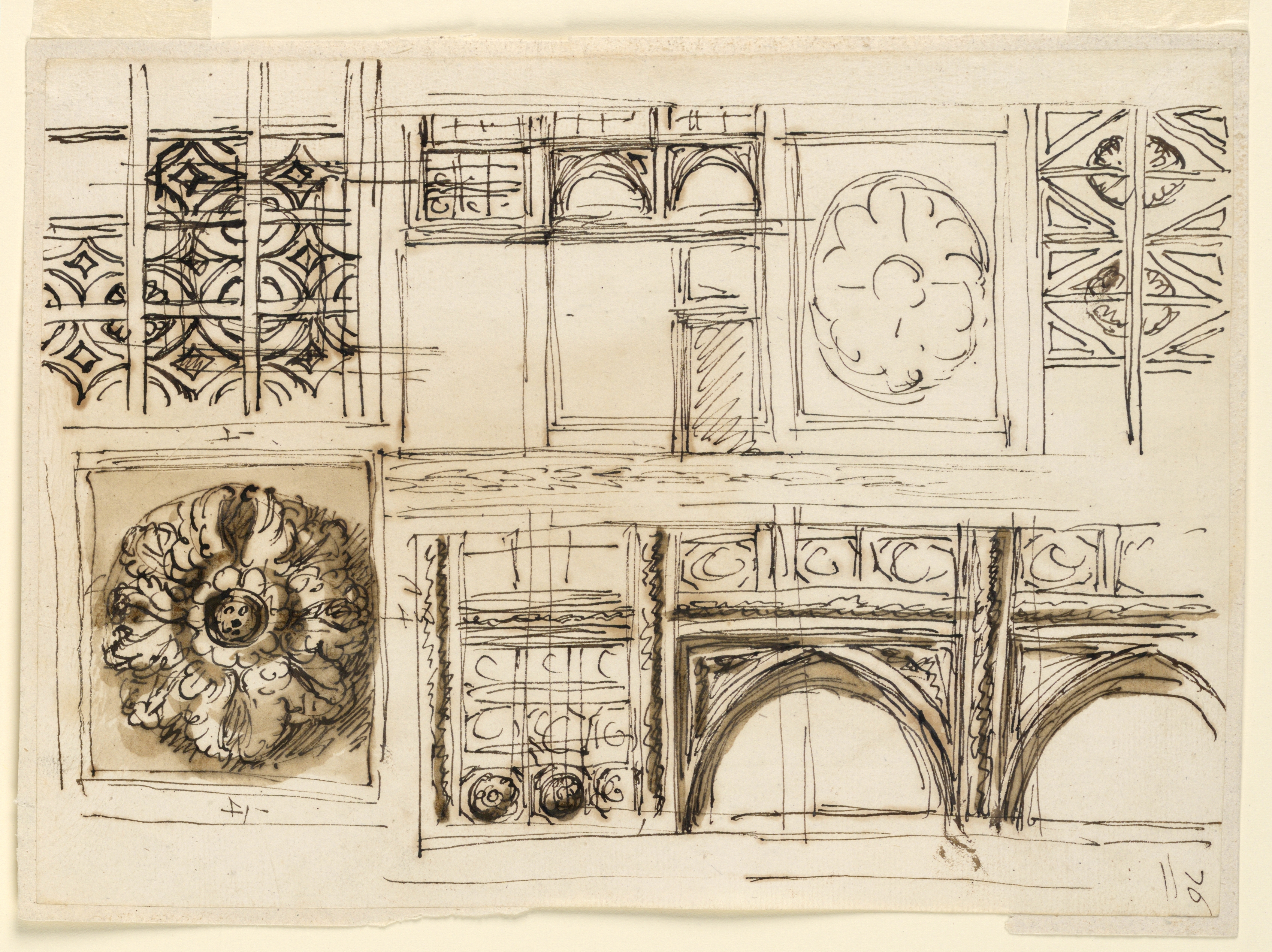 This is a Drawing. It was designed by Giuseppe Barberi and architect: Giuseppe Barberi. It is dated 1746–1809 and we acquired it in 1938. Its medium is pen and brown ink, brush and brown wash on off-white laid paper, lined. It is a part of the Drawings, Prints, and Graphic Design department.