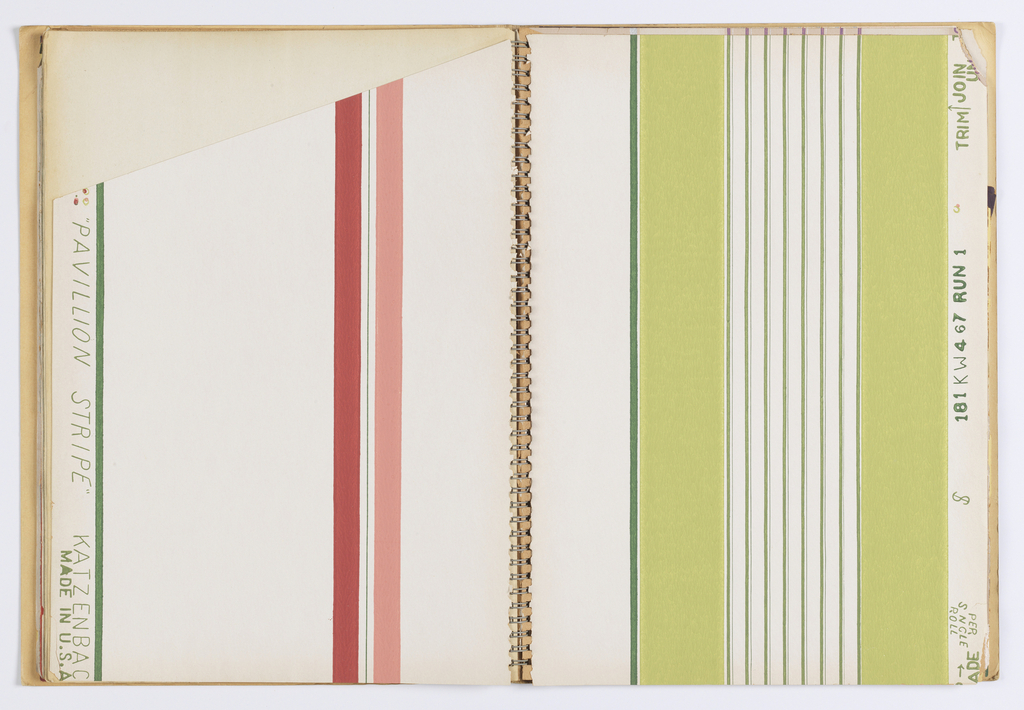 Sample Book, Book 3x Stripes; Manufactured by Katzenbach and Warren, Inc. (United States); USA; screen printed on paper; 39 x 30 cm (15 3/8 x 11 13/16 in.); Gift of Katzenbach and Warren, Inc.; 1949-46-4-1/25