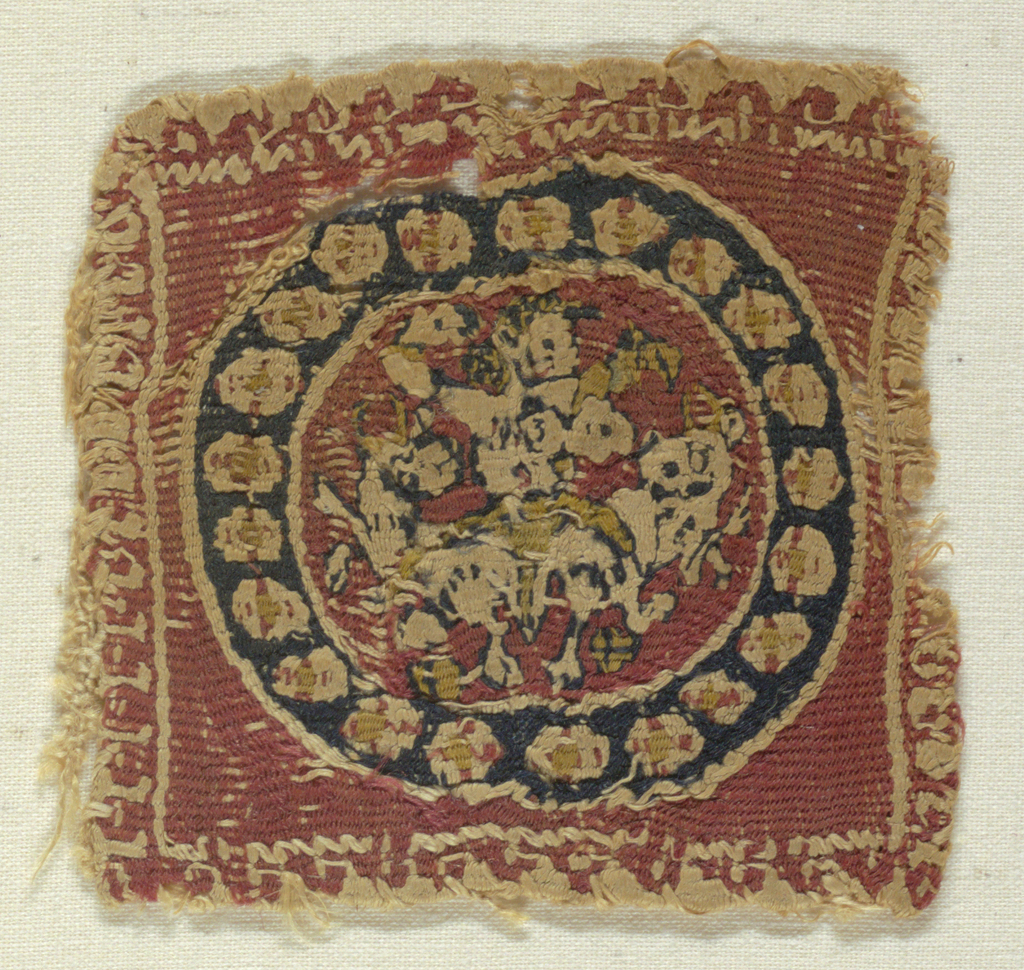 This is a Fragment. We acquired it in 1951. Its medium is s-twist warp, s-twist weft and its technique is slit tapestry. It is a part of the Textiles department.