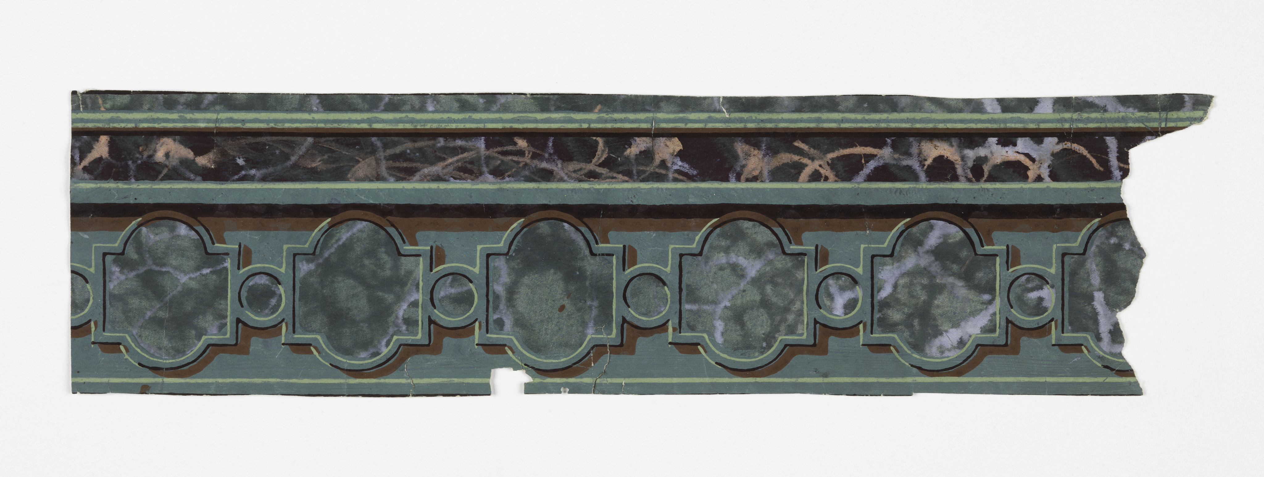This is a Border. It is dated 1815–30 and we acquired it in 1951. Its medium is block-printed. It is a part of the Wallcoverings department.