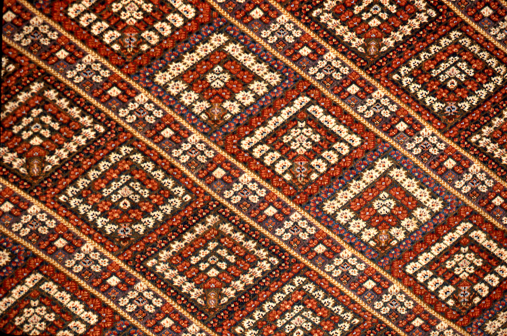 This is a Panel for women's trousers. It is dated 18th–19th century and we acquired it in 1955. Its medium is silk embroidery on cotton foundation and its technique is embroidered in cross stitch on plain weave. It is a part of the Textiles department.