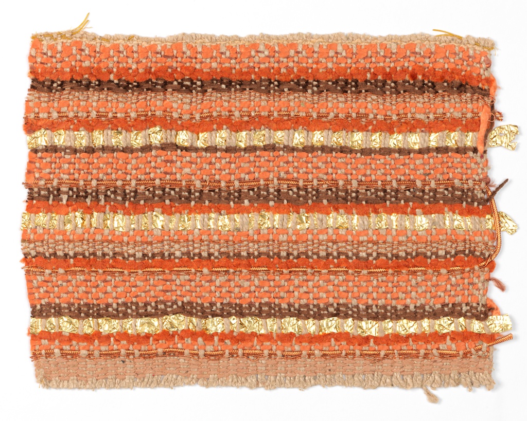 Sample (USA); Designed by Dorothy Wright Liebes (American, 1897–1972); cotton, viscose rayon, silk, cellulose acetate-laminated aluminum yarn; H x W (sample): 22.5 × 30 cm (8 7/8 × 11 13/16 in.); Gift of Mrs. Morris D.C. Crawford; 1955-71-6