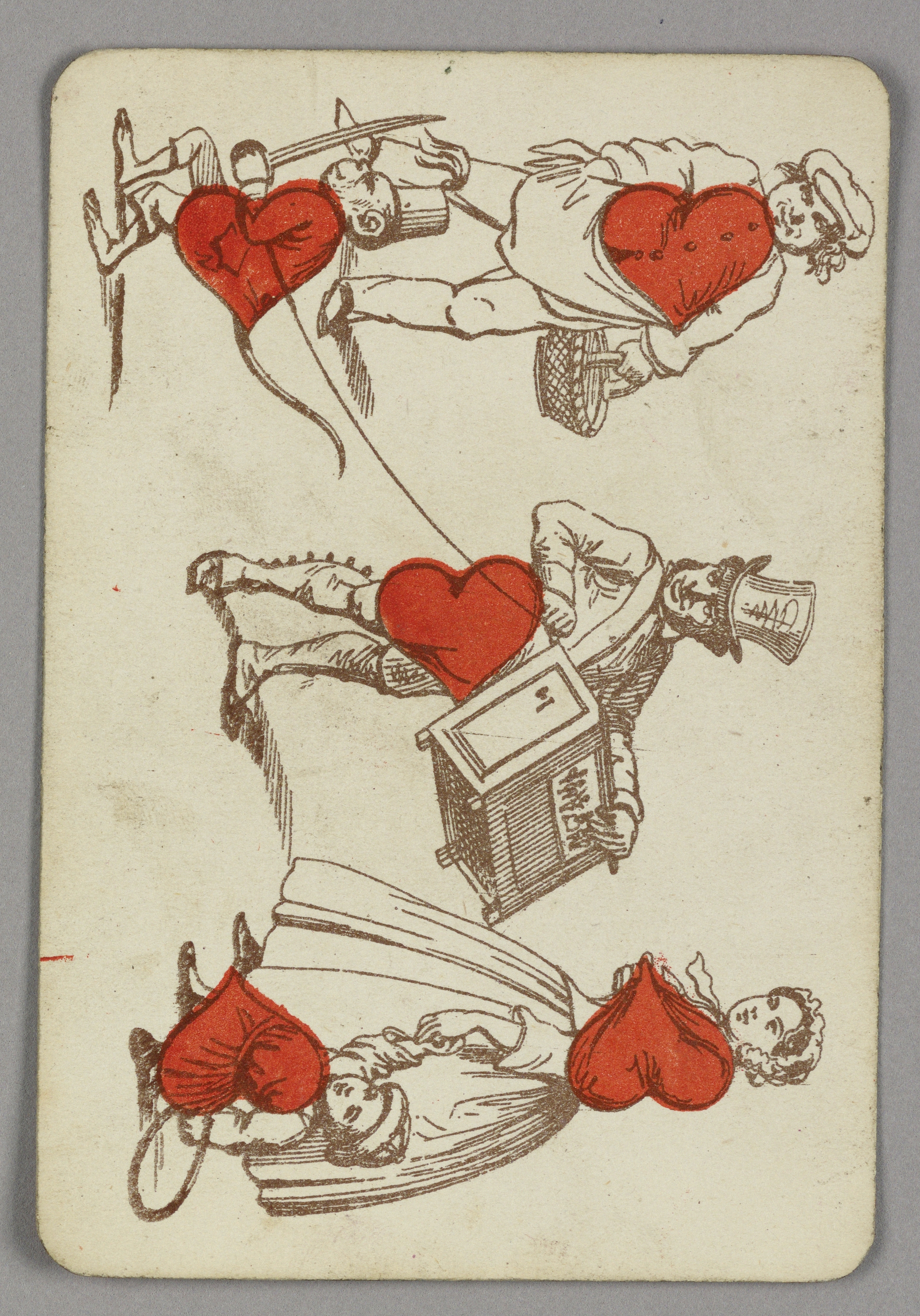 Playing Card, Five of Hearts; Designed by E. Le Tellier (French, active late 19th century); Printed by Belin; Manufactured by B.P. Grimaud; lithograph on paper; 10.4 × 7.1 cm (4 1/8 × 2 13/16 in.); Gift of Mrs. Dexter J. Purinton; 1955-78-14-15