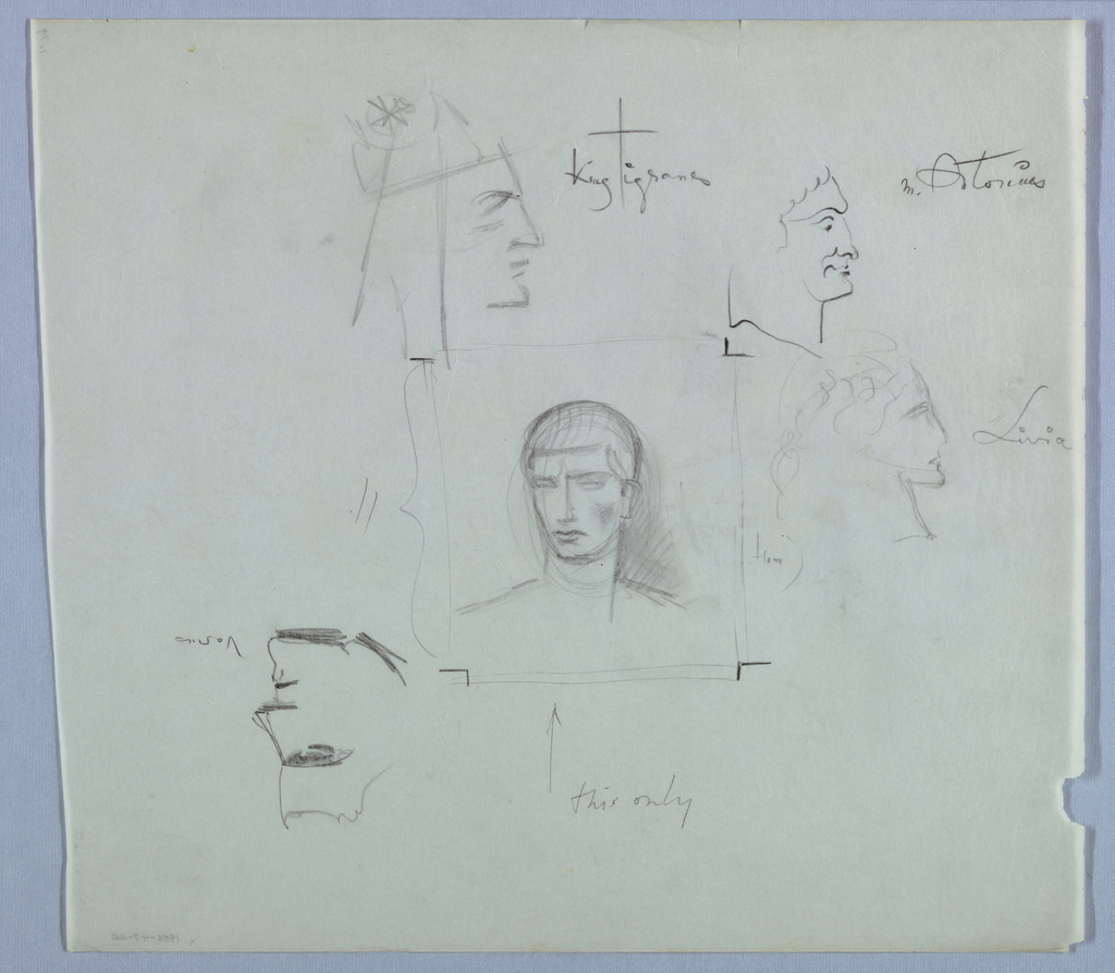 Drawing, The Rise of Rome: Five Heads (Four Male; One Female); Designed by Gustav Boerg Jensen (Danish, 1898 – 1954); USA; china marker; graphite pencil; 34.5 x 37.5 cm (13 5/8 x 14 3/4 in.); Gift of Ellen Gustav Jensen; 1956-47-20