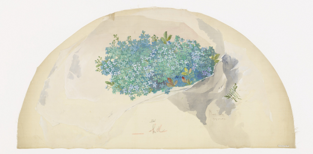 This is a Fan leaf. It is dated late 19th–early 20th century and we acquired it in 1959. Its medium is silk painted with gouache. It is a part of the Textiles department.