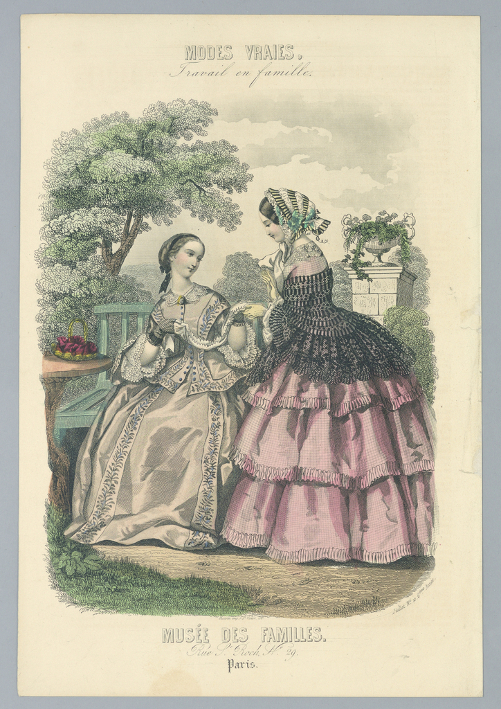 Print, Fashion Plate, Modes Vraies; Published by Musée des Familles; Printed by Rossin; engraving, brush and watercolor on paper; 27.4 × 18.6 cm (10 13/16 × 7 5/16 in.); Gift of Hamill and Barker; 1962-143-36