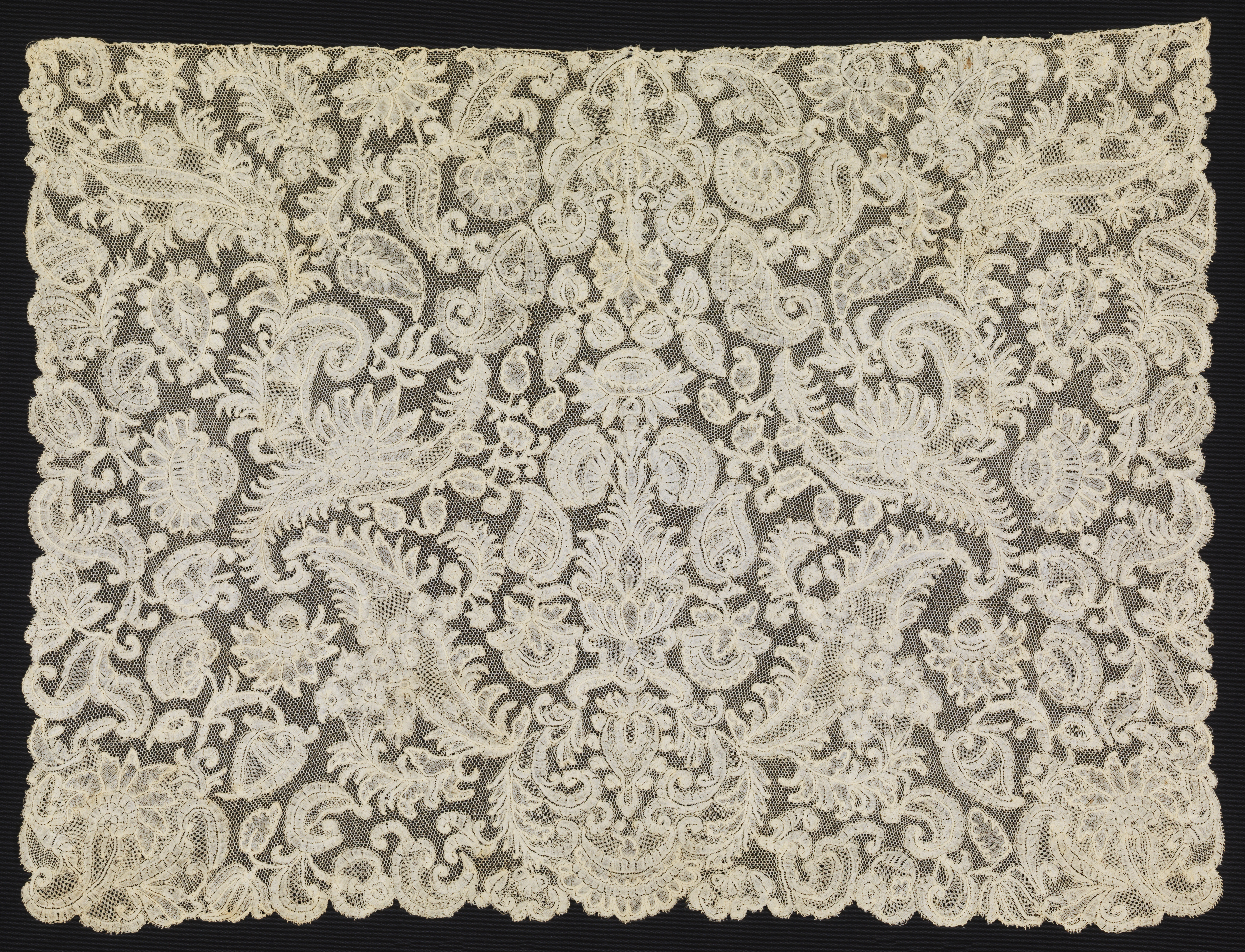 This is a Cravat end. It is dated 1700–1750 and we acquired it in 1962. Its medium is linen and its technique is bobbin lace, brussels lace. It is a part of the Textiles department.