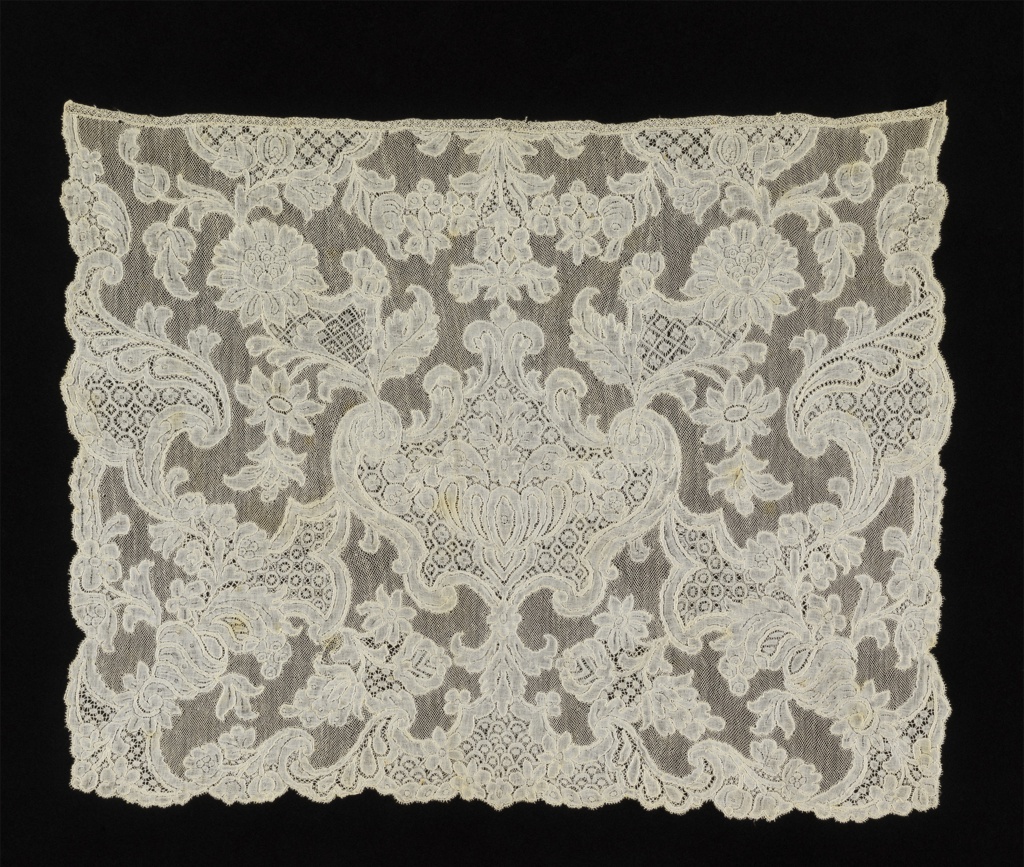 This is a Cravat end. It is dated mid-18th century and we acquired it in 1962. Its medium is linen and its technique is bobbin lace, mechlin ground. It is a part of the Textiles department.