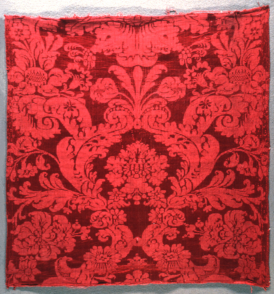 This is a Fragment. It is dated 17th–18th century and we acquired it in 1962. Its medium is 1902-1-304silk and its technique is 5-harness satin damask. It is a part of the Textiles department.