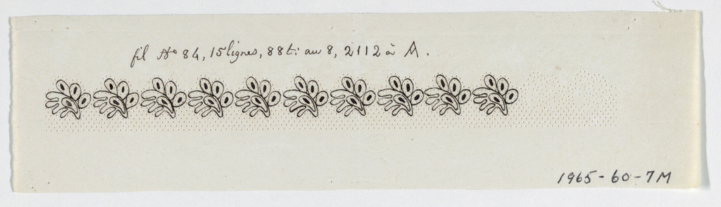 This is a pattern prickings. We acquired it in 1965. Its medium is paper, cardboard. It is a part of the Textiles department.