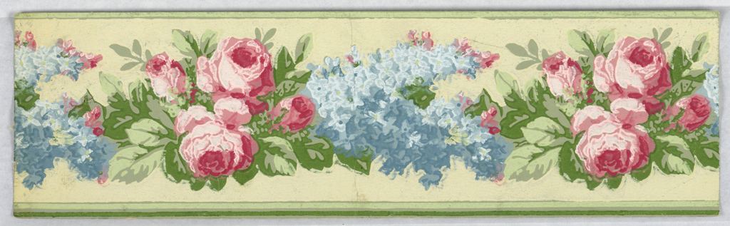 This is a Borders. It is dated 1900–1924 and we acquired it in 1966. Its medium is block-printed, stenciled, embossed paper, grasscloth. It is a part of the Wallcoverings department.
