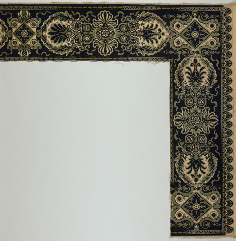 This is a Border. We acquired it in 1968. Its medium is cotton (?) and its technique is supplementary weft in a plain weave foundation (velveteen). It is a part of the Textiles department.
