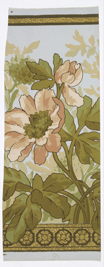 This is a frieze. We acquired it in 1972. Its medium is machine-printed on textured paper. It is a part of the Wallcoverings department.