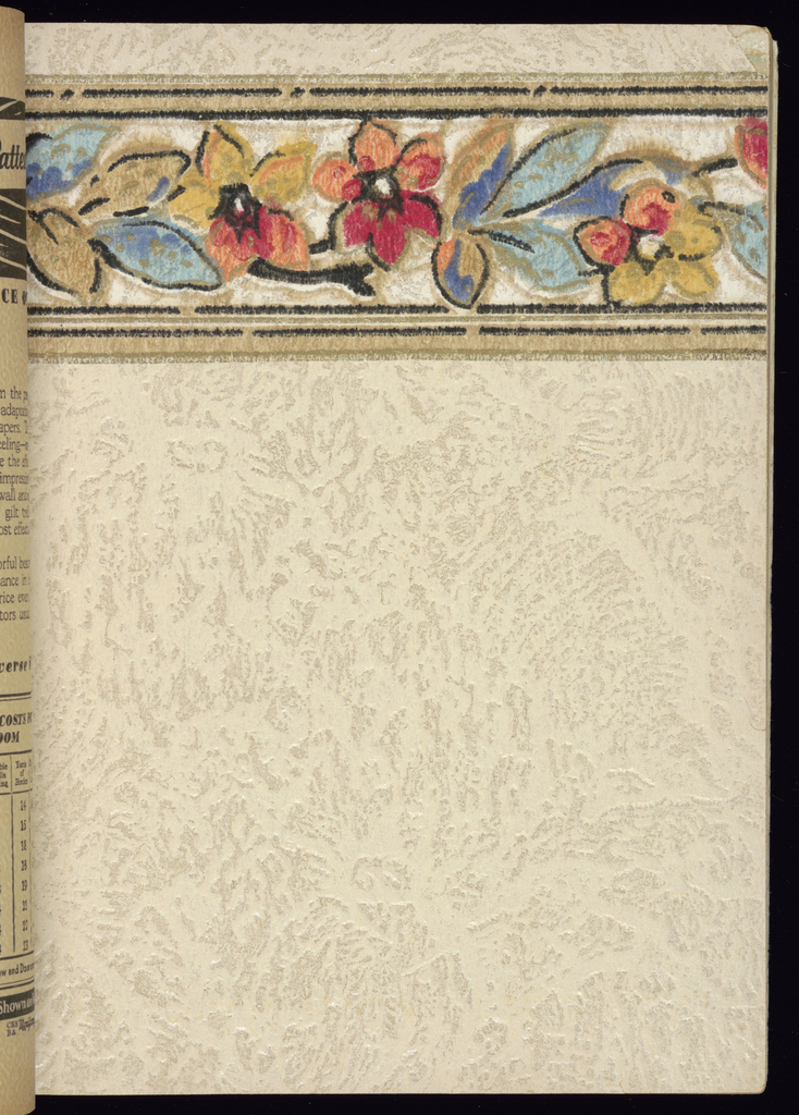 This is a Sample book. It was distributed by Montgomery Ward & Co., Inc.. It is dated 1931 and we acquired it in 1975. Its medium is machine-printed paper. It is a part of the Wallcoverings department.