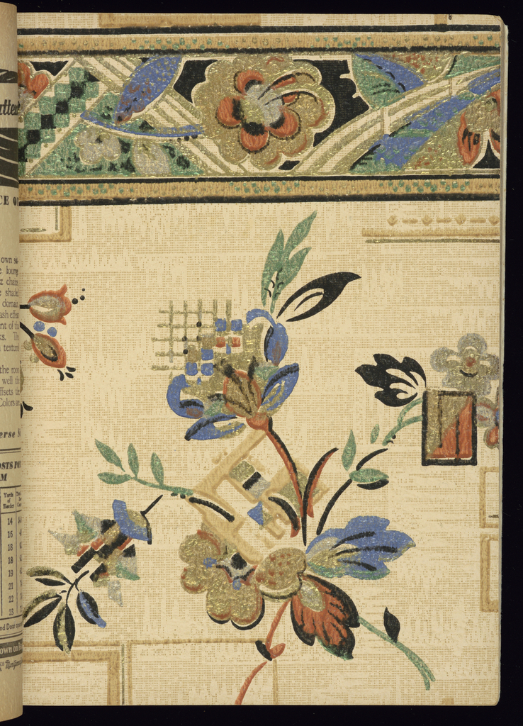 This is a Sample book. It was distributed by Montgomery Ward & Co., Inc.. It is dated 1931 and we acquired it in 1975. Its medium is machine-printed paper. It is a part of the Wallcoverings department.