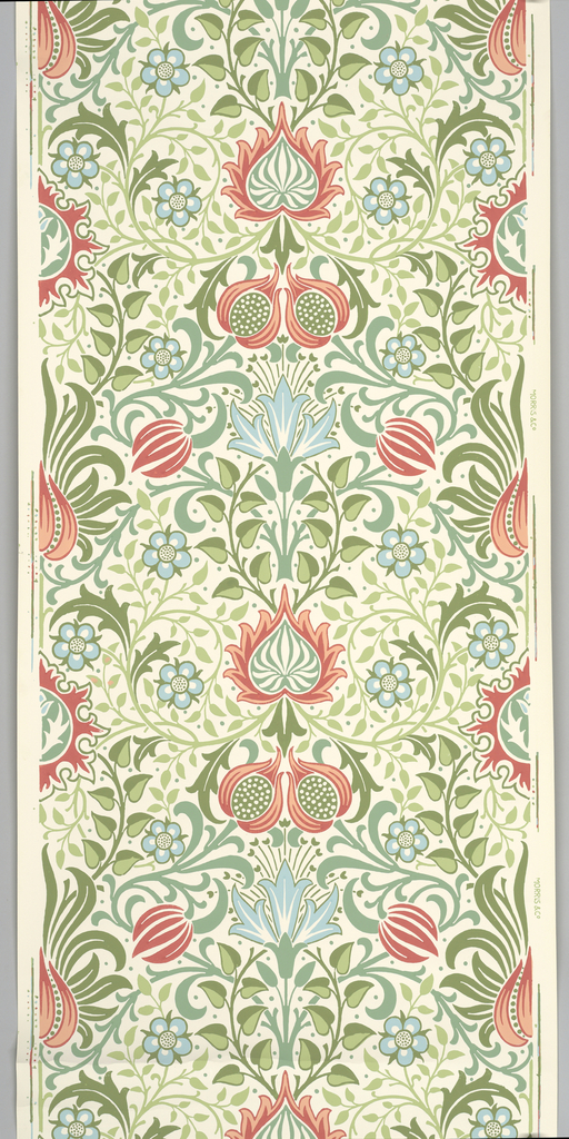 Sidewall, Persian; England; block-printed on paper; H x W x D (a): 95 x 55.5 cm (37 3/8 x 21 7/8 in.) H x W x D (b): 231 x 56 cm (7 ft. 6 15/16 in. x 22 1/16 in.) H x W (d): 95 x 55.5 cm (37 3/8 x 21 7/8 in.); Gift of Clifford Murvine, Reed Wallpaper Company; 1977-28-14-a/d
