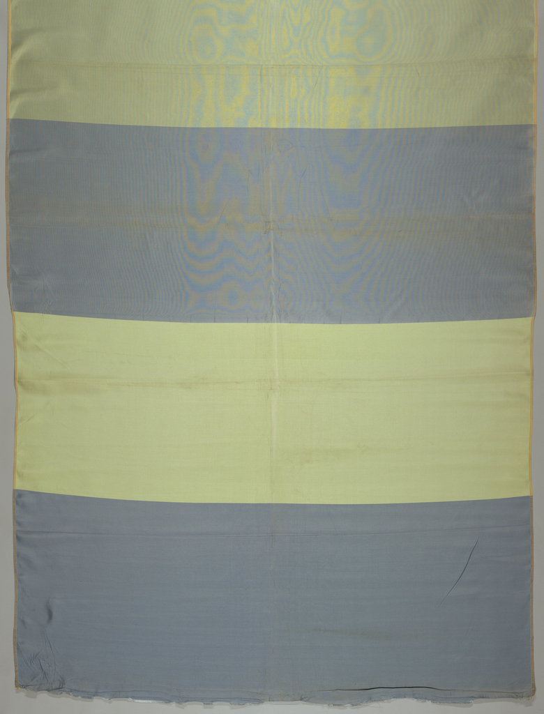 This is a Sample blanket. It was company: F. Schumacher & Co.. It is dated mid-20th century and we acquired it in 1979. Its medium is silk and its technique is plain weave, 3&1 twill, 7&1 satin. It is a part of the Textiles department.