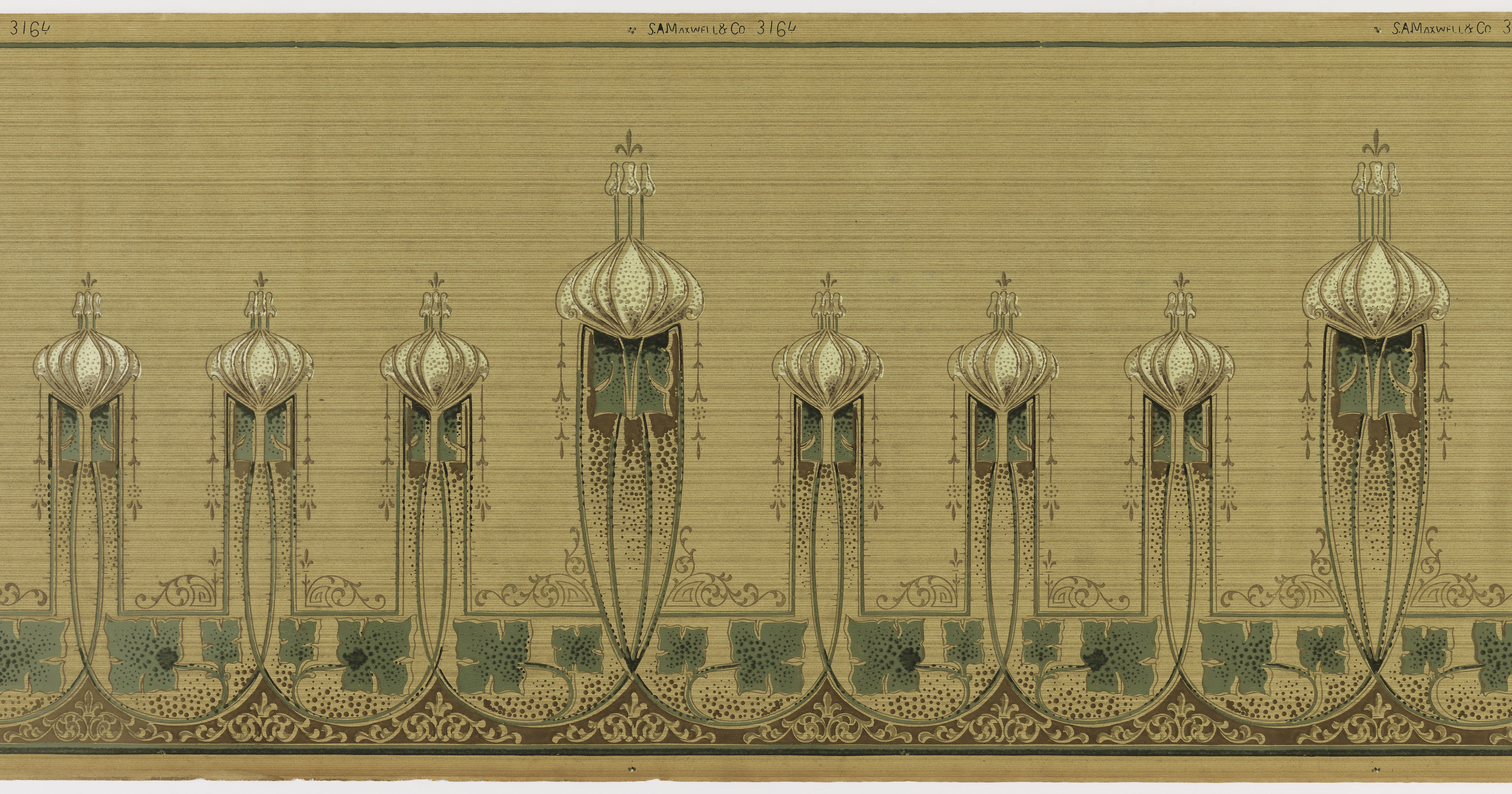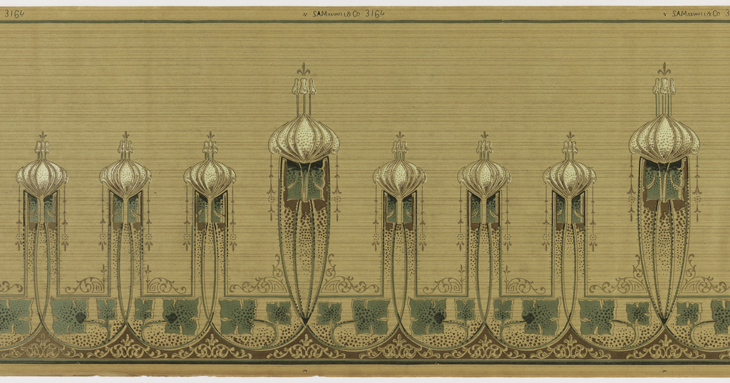 This is a frieze. It was distributed by Maxwell & Co., S.A.. It is dated 1905–1915 and we acquired it in 1979. Its medium is machine-printed paper. It is a part of the Wallcoverings department.