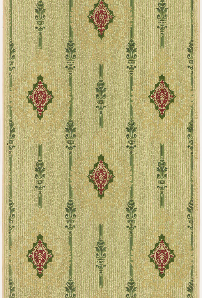 Sidewall (USA); Manufactured by Imperial Wallcoverings Inc. (United States); machine-printed paper, liquid mica; 89 x 49 cm (35 1/16 x 19 5/16 in.); Gift of Victorian Collectibles; 1979-91-1241