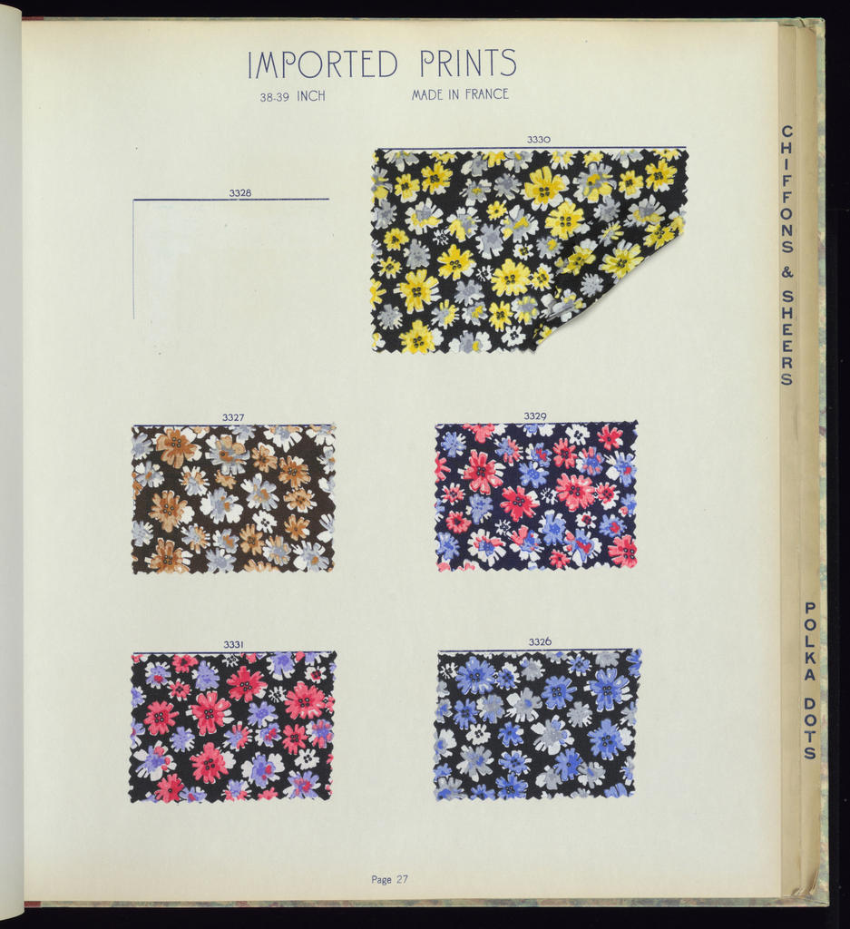 This is a Sample book. It was company: Moss-Still, Inc.. It is dated 1939 and we acquired it in 1939. Its medium is silk, rayon, paper, cloth covered cardboard and its technique is printed. It is a part of the Textiles department.