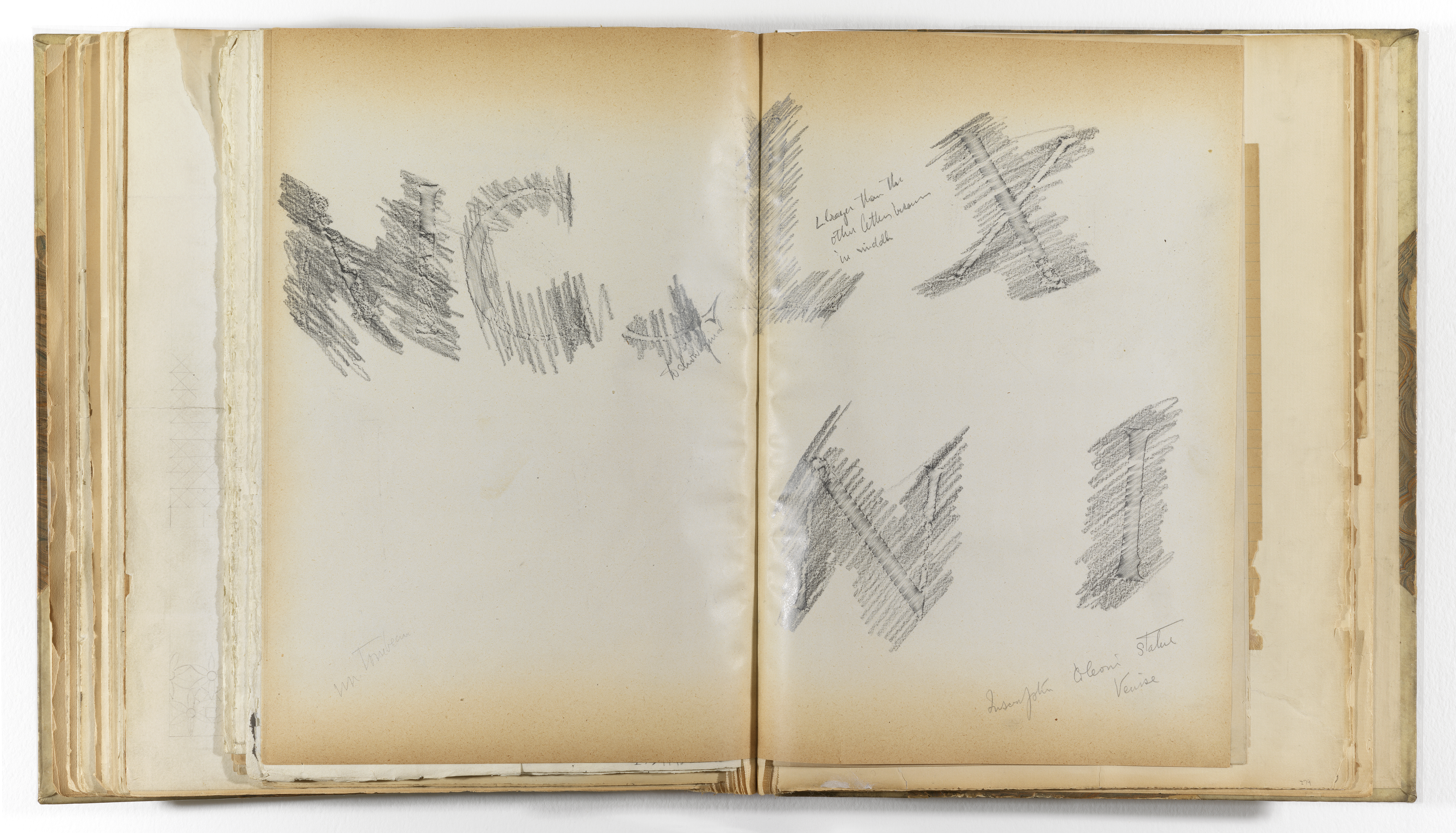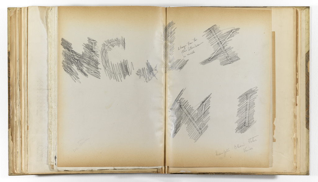 This is a Album page. It was created by Whitney Warren Jr.. It is dated late 19th century and we acquired it in 1943. Its medium is graphite on very smooth, off-white wove paper, folded and tipped into binding with fabric. It is a part of the Drawings, Prints, and Graphic Design department.