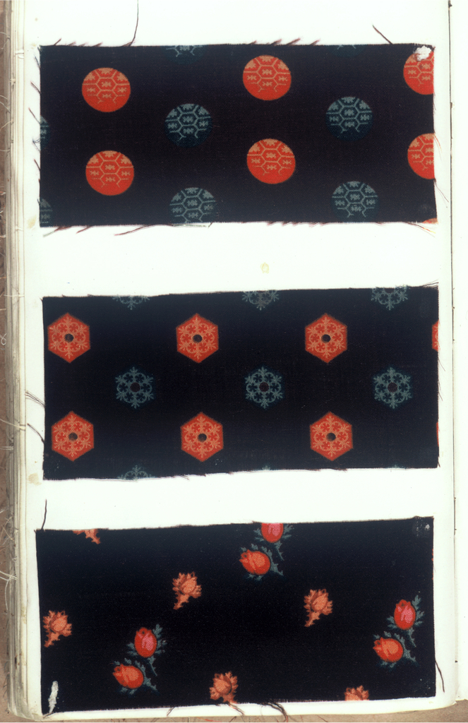 Dyer's Record Book (USA); Company: Old Pacific Print Works; cardboard, paper, cotton; 20.6 cm x 34.0 cm; Gift of Frederick J. Whitehead from the collection compiled by his father Cornelius Whitehead at the Pacific Print Works of Lawrence, Massachusetts; 1945-55-14