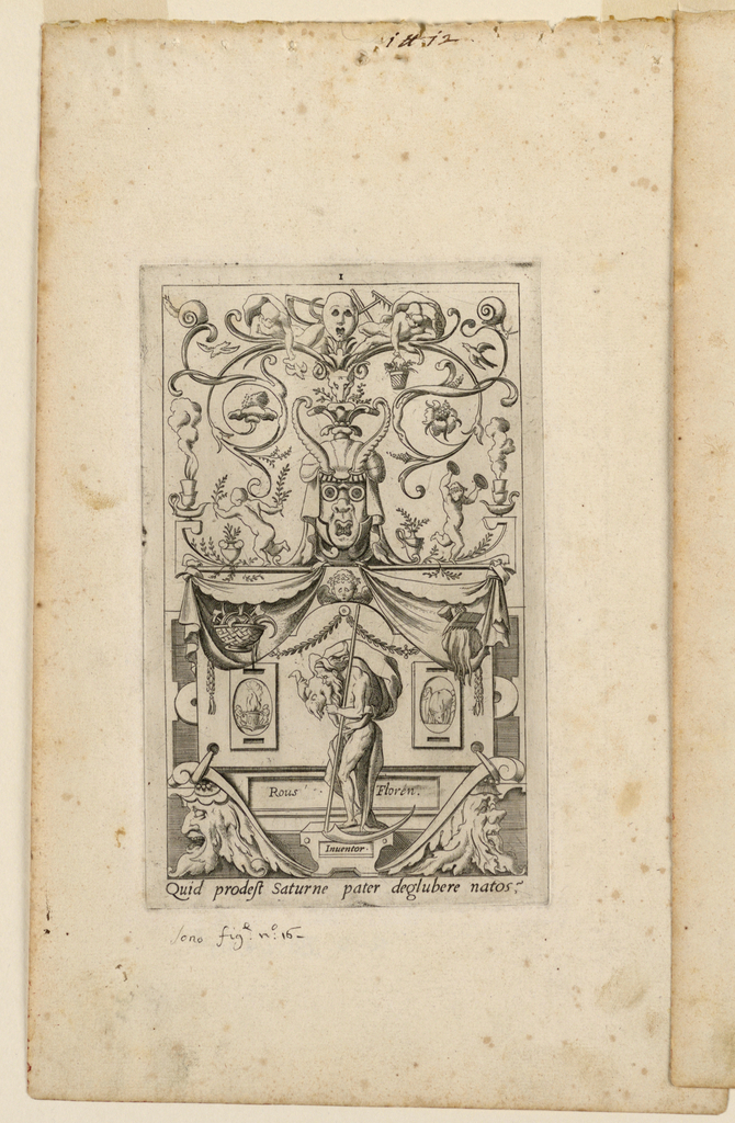 [on a plaque]: Rous, Floren. [below] : Inventor [along lower margin]: auid prodest Saturne Pater Deglubere