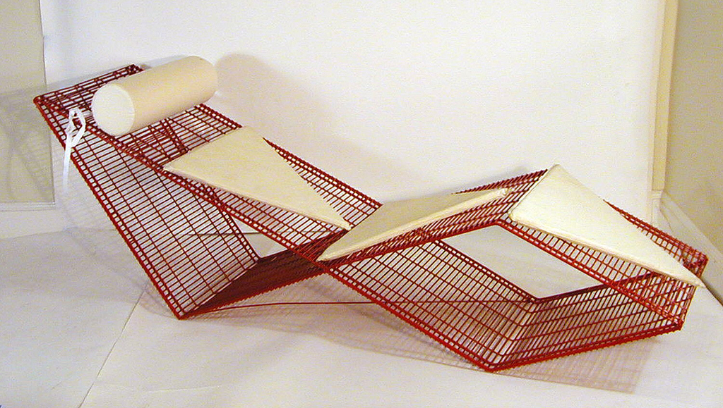 Chair And Cushions (Austria); Designed by Alexander Korab (Austrian, b. 1962); Manufactured by Alpenländische Veredelungs-Industrie Gesellschaft m.b.H. (Austria); metal, enamelled; 68 x 51 x 180 cm (26 3/4 x 20 1/16 x 70 7/8 in. ); 1987-32-1-a/e