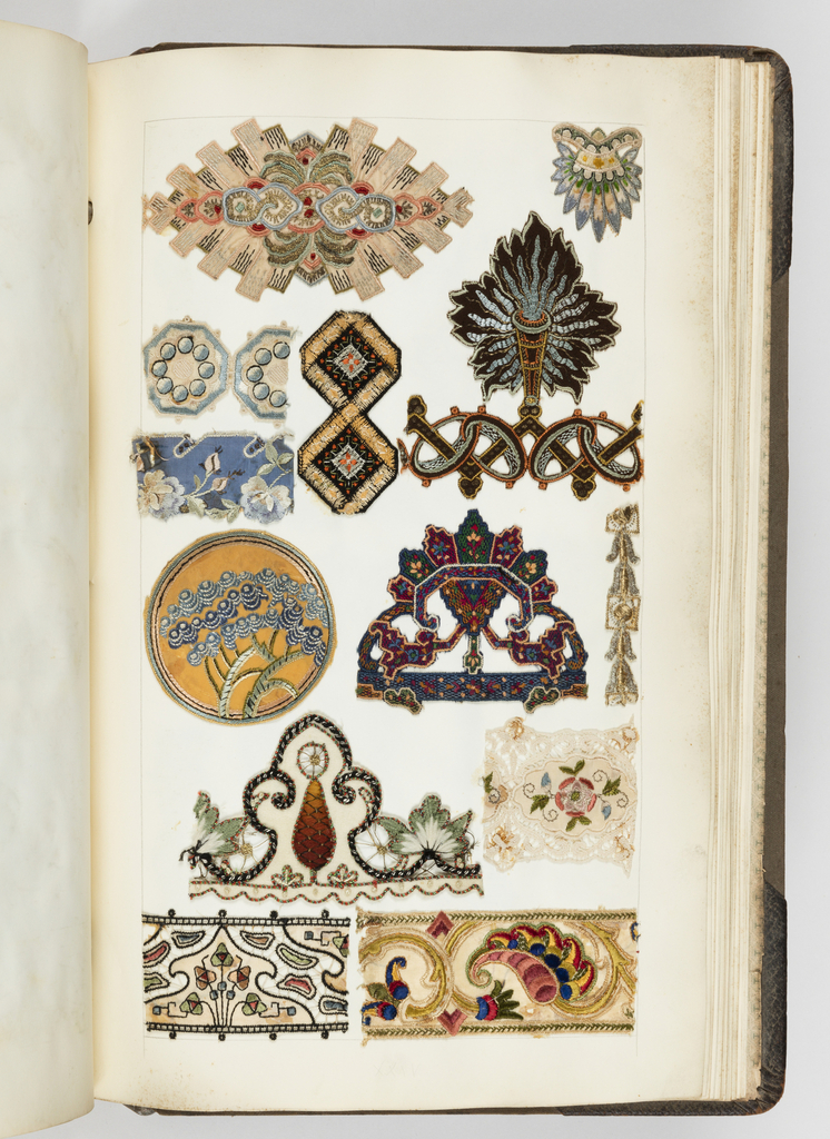 This is a Sample book of embroidery trimmings. It is dated 1900–10 and we acquired it in 1987. It is a part of the Textiles department.