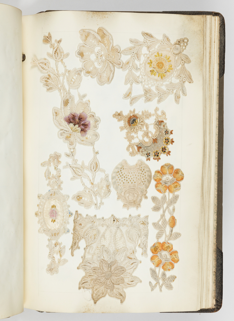 This is a Sample book of embroidery trimmings. It is dated 1900–10 and we acquired it in 1987. It is a part of the Textiles department.