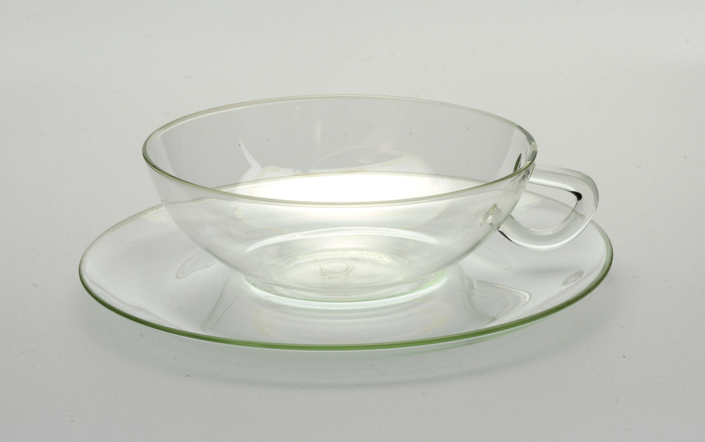 Tea Cup And Saucer (Germany); glass; H x W x D (cup): 3.6 x 12.6 x 10.9 cm (1 7/16 x 4 15/16 x 4 5/16 in.) H x diam. (saucer): 1.2 x 14.8 cm (1/2 x 5 13/16 in.); Museum purchase from General Acquisition Endowment; 1987-8-2-a,b