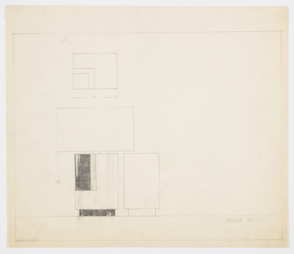Inscribed in graphite, lower right: SCALE 3"=1'; in graphite: dimensions