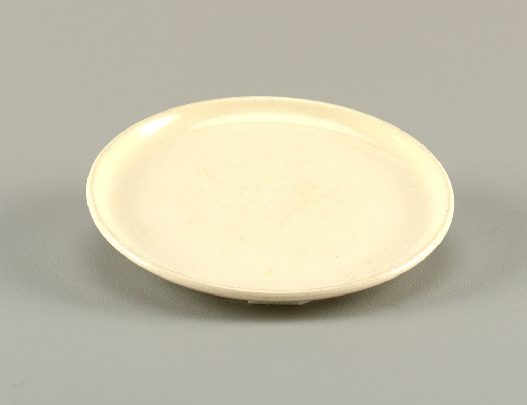 This is a plate. It was designed by Russel Wright. It is dated 1940–55 and we acquired it in 1993. Its medium is glazed earthenware. It is a part of the Product Design and Decorative Arts department.