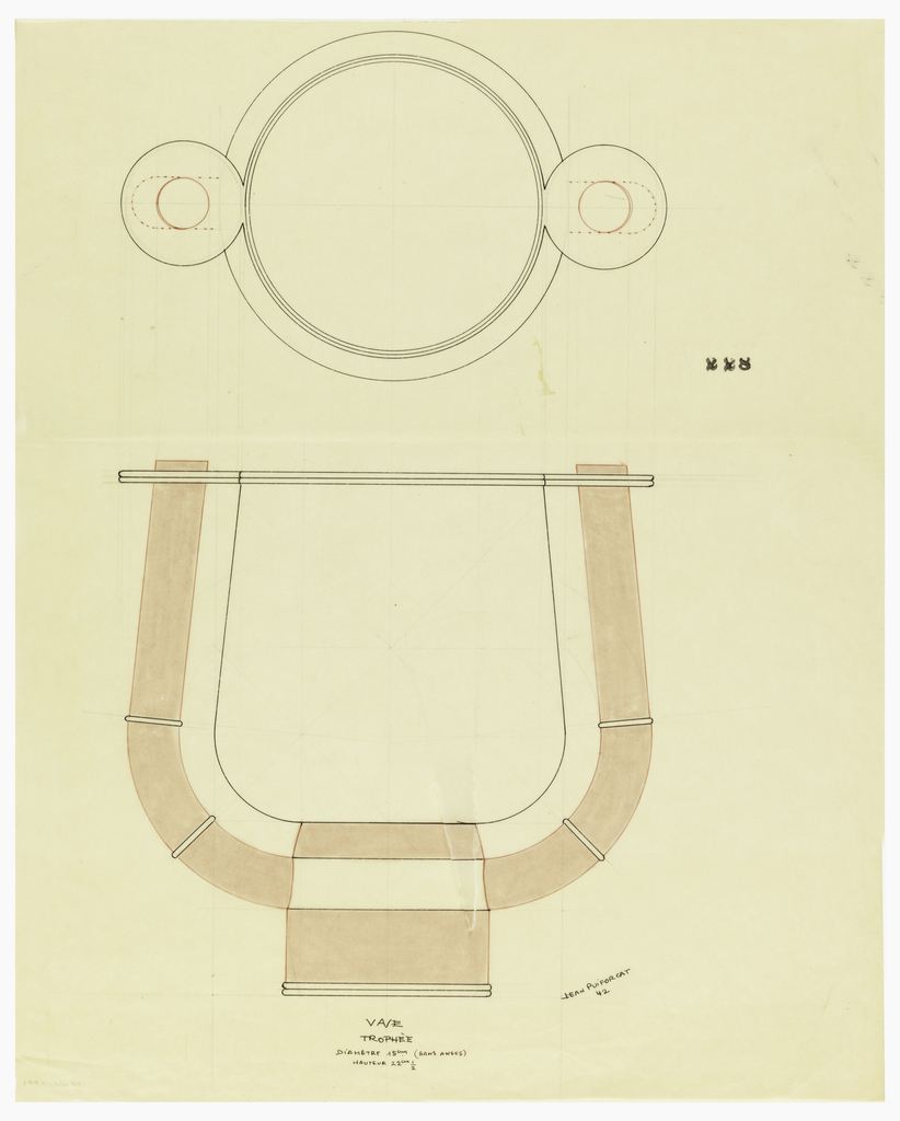 Drawing, Design for a Trophy Vase; France; pen and black, red ink, red color pencil, graphite on cream tracing paper; 47 x 37.1cm (18 1/2 x 14 5/8in.); Gift of John Finguerra in memory of his brother Jim Finguerra; 1995-164-30