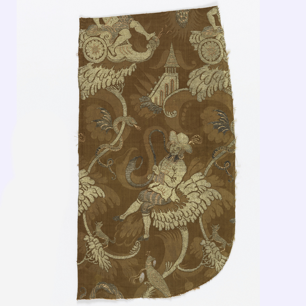 This is a Fragments. It is dated ca. 1690 and we acquired it in 1995. Its medium is silk and its technique is damassé brocaded. It is a part of the Textiles department.