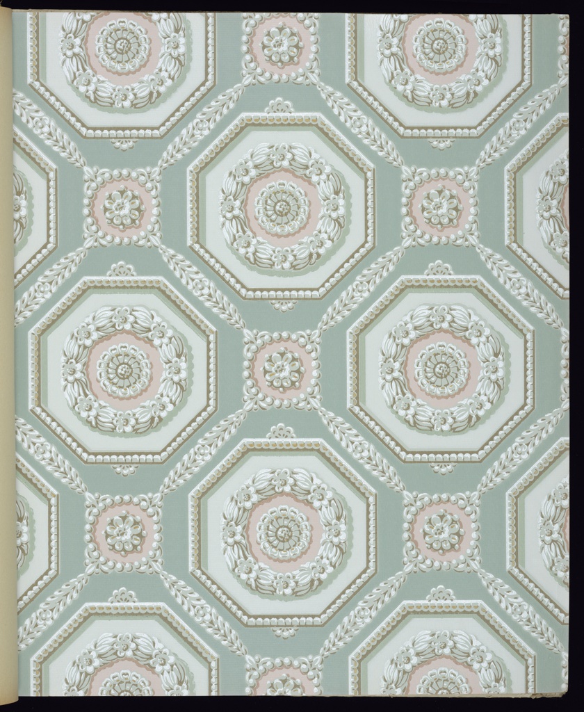 This is a Sample book. It was manufactured by M.H. Birge & Sons Co.. It is dated 1950 and we acquired it in 1995. Its medium is machine-printed paper, embossed, flocked. It is a part of the Wallcoverings department.