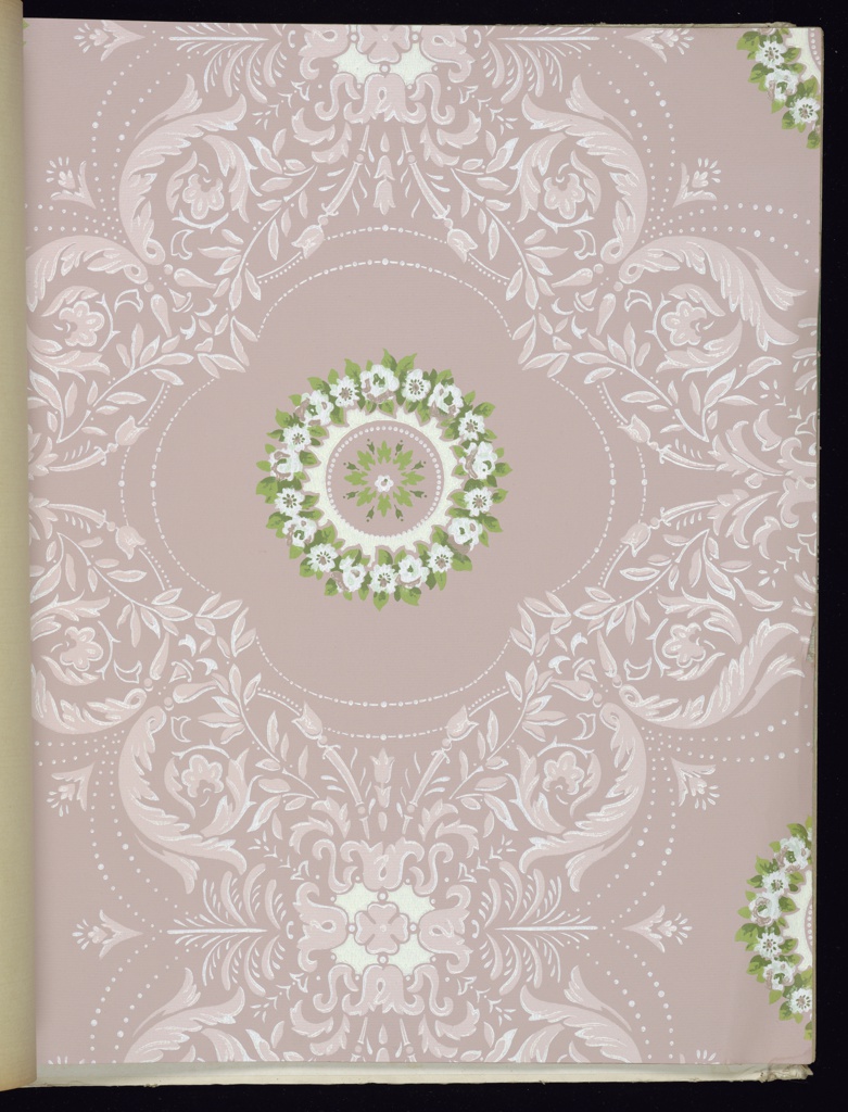 This is a Sample book. It was manufactured by M.H. Birge & Sons Co.. It is dated 1950 and we acquired it in 1995. Its medium is machine-printed paper, embossed, flocked. It is a part of the Wallcoverings department.
