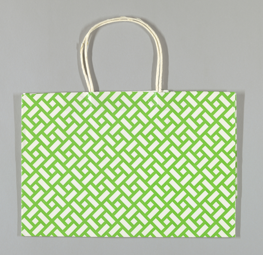 This is a Shopping bag. It was manufactured by S. Posner Sons, Inc.. It is dated 1978 and we acquired it in 2000. It is a part of the Drawings, Prints, and Graphic Design department.