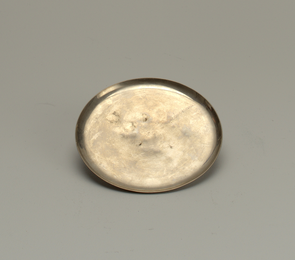 This is a saucer. It is dated 1930–35 and we acquired it in 1967. Its medium is plated metal, wood. It is a part of the Product Design and Decorative Arts department.
