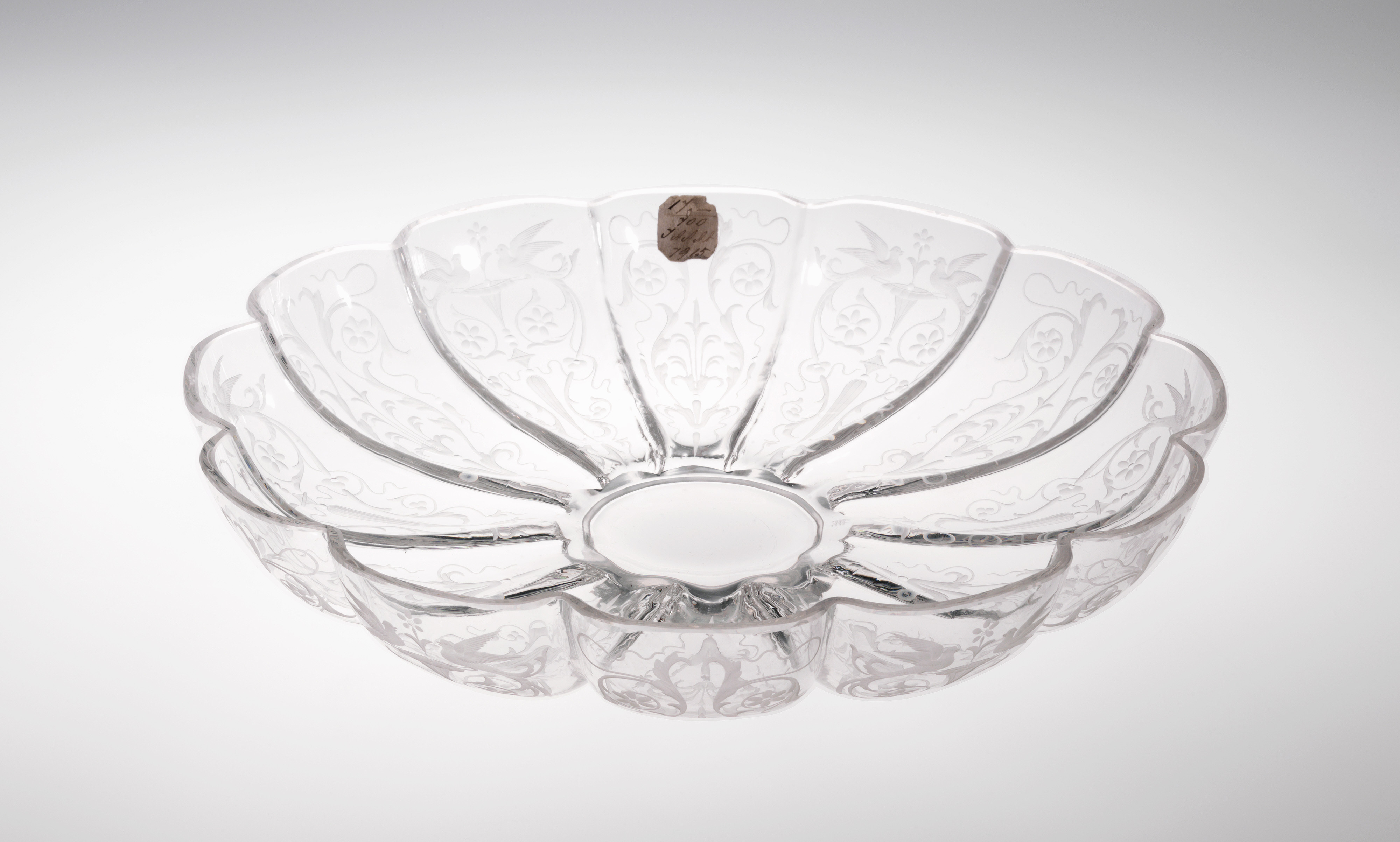 Birds of Paradise Plate; Designed by Ludwig Lobmeyr (Austrian, 1829 - 1917); Manufactured by J. & L. Lobmeyr GmbH (Austria); Austria; glass; H x diam.: 4.5 x 22.5 cm (1 3/4 x 8 7/8 in.); Museum purchase through gift of Dale and Doug Anderson, Anonymous Donor, Arthur Liu, and Prairie Pictures, Inc. and from General Acquisitions Endowment Fund; 2009-18-161